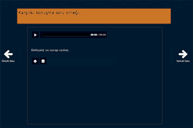 - Karşılıklı Konuşma: kullanıcılara sesli olarak yöneltilen ve onlardan sözlü olarak cevap vermeleri beklenen sesli soruların yer aldığı bölümdür.