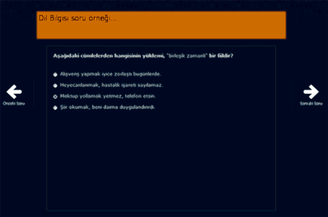 Türkçe dil bilgisi becerilerinin ölçüldüğü çoktan seçmeli sorulardan oluşan bölümdür.