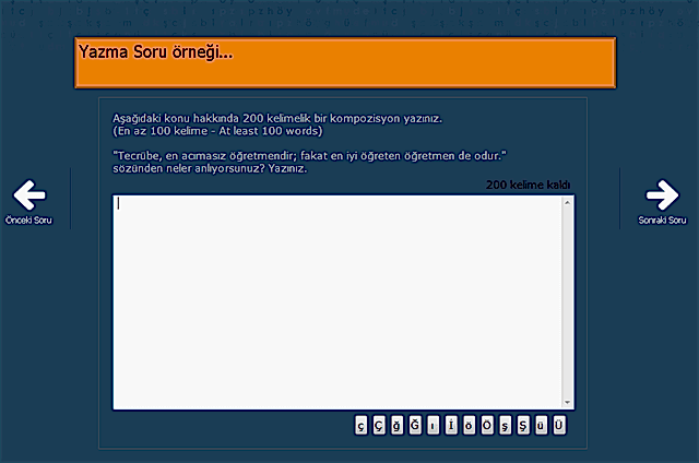 Kullanıcıların Türkçeyi yazılı olarak kullanma becerilerini ölçen soruların yer aldığı bölümdür.